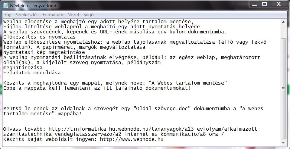 - Mentsd le ennek az oldalnak a szövegét egy "Oldal szövege.doc" dokumentumba a "A Webes tartalom mentése" mappába!