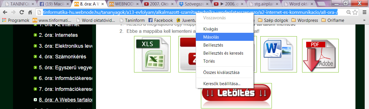 - Töltsd le az oldalon található összes képet a "A Webes tartalom mentése" mappába!