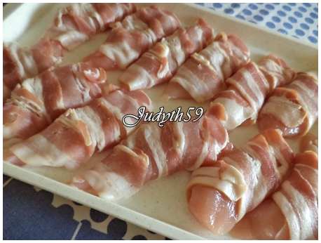 Csirkemell csíkok bacon masniban burgonyakrokettel sajtmártással